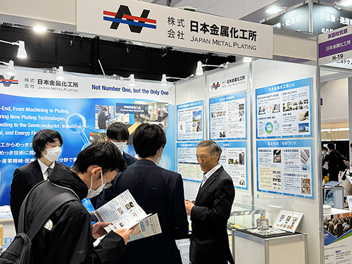 また、微細加工から量産対応までの幅広い加工領域において、素材特性を踏まえためっき設計を組み合わせることで、品質・性能・安定供給の両立が可能である点を訴求しました。加工と表面処理を個別に考えるのではなく、工程全体を見据えた対応ができる点は、日本金属化工所ならではの特徴として、多くの来場者の関心を集めました。
